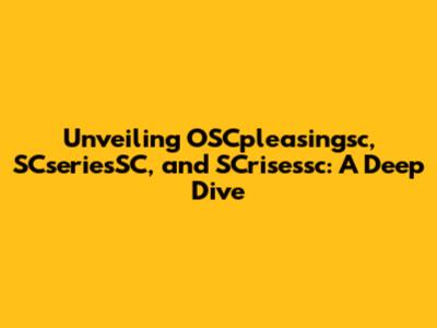 Unveiling OSCpleasingsc, SCseriesSC, And SCrisessc: A Deep Dive