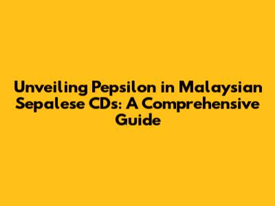 Unveiling Pepsilon In Malaysian Sepalese CDs: A Comprehensive Guide
