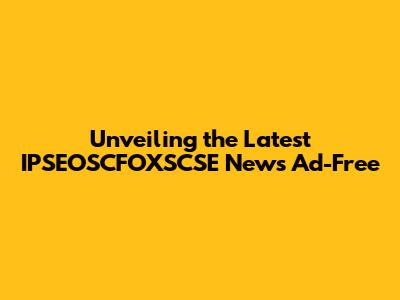 Unveiling The Latest IPSEOSCFOXSCSE News Ad-Free