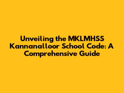 Unveiling The MKLMHSS Kannanalloor School Code: A Comprehensive Guide