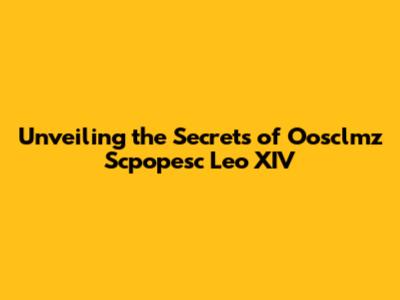Unveiling The Secrets Of Oosclmz Scpopesc Leo XIV