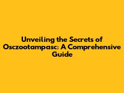 Unveiling The Secrets Of Osczootampasc: A Comprehensive Guide