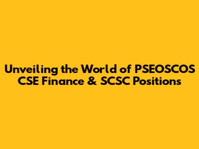 Unveiling The World Of PSEOSCOS CSE Finance & SCSC Positions
