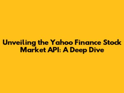 Unveiling The Yahoo Finance Stock Market API: A Deep Dive