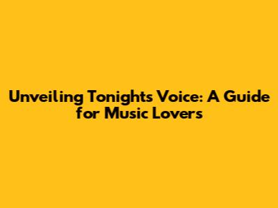 Unveiling Tonight's Voice: A Guide For Music Lovers