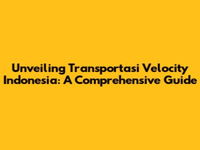Unveiling Transportasi Velocity Indonesia: A Comprehensive Guide