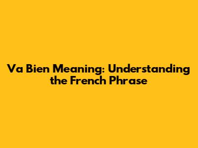 Va Bien Meaning: Understanding The French Phrase