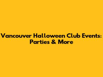 Vancouver Halloween Club Events: Parties & More