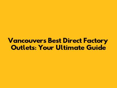 Vancouver's Best Direct Factory Outlets: Your Ultimate Guide