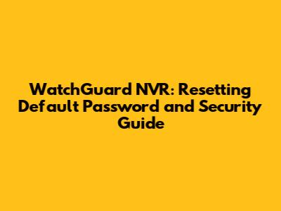 WatchGuard NVR: Resetting Default Password And Security Guide
