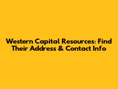 Western Capital Resources: Find Their Address & Contact Info