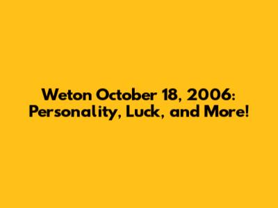 Weton October 18, 2006: Personality, Luck, And More!