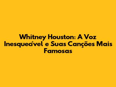 Essas são apenas algumas das muitas canções que consagraram Whitney Houston como uma lenda da música. Sua voz, sua emoção e sua capacidade de se conectar com o público a tornaram uma artista inesquecível. Cada uma dessas músicas representa um momento especial em sua carreira e um marco na história da música.