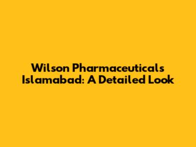 Wilson Pharmaceuticals in Islamabad: What You Need to Know