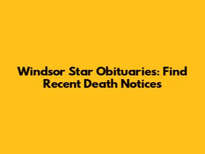 Windsor Star Obituaries: Find Recent Death Notices