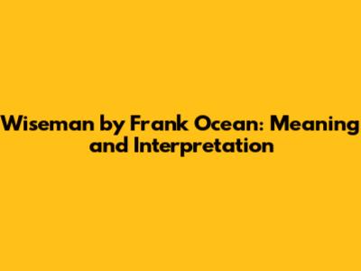 Wiseman By Frank Ocean: Meaning And Interpretation