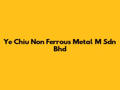Ye Chiu Non Ferrous Metal M Sdn Bhd: An Overview
