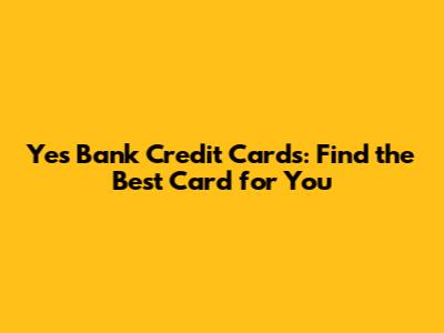 Yes Bank Credit Cards: Find The Best Card For You