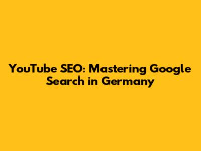 YouTube SEO: Mastering Google Search In Germany