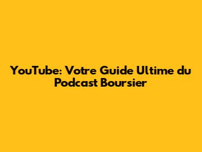 YouTube: Votre Guide Ultime Du Podcast Boursier