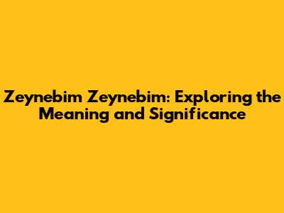 Zeynebim Zeynebim: Exploring The Meaning