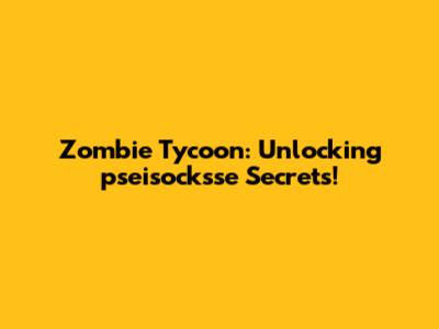 Zombie Tycoon: Unlocking pseisocksse Secrets!